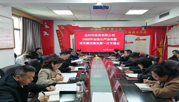 2022年3月2日,市投資有限公司召開2022年全面從嚴治黨暨黨風廉潔建設專題會議,開展黨員干部警示教育,安排部署公司2022年全面從嚴治黨和黨風廉潔建設工作。公司中層以上黨員干部20余人參加了會議。黨委副書記、總經理陳玨光主持會議。