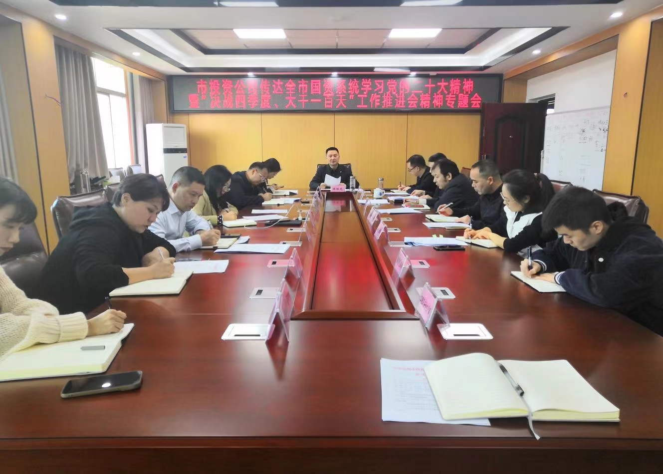 市投資公司黨委傳達全市國資系統學習黨的二十大精神暨“決戰四季度、大干一百天”工作推進會精神